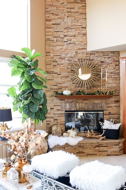 Did I already mention how much I enjoyed decorating for Fall this year? lol For me, Fall means creating an ambiance that is warm, cozy & inviting. The thought of spending days where you just turn on the fireplace, cuddle and watch a movie with your family…with hot chocolate of coarse 😉 it’s just priceless! If you think about it, during Fall & Winter; we tend to spend most of our time indoors anyway so why not make it special.