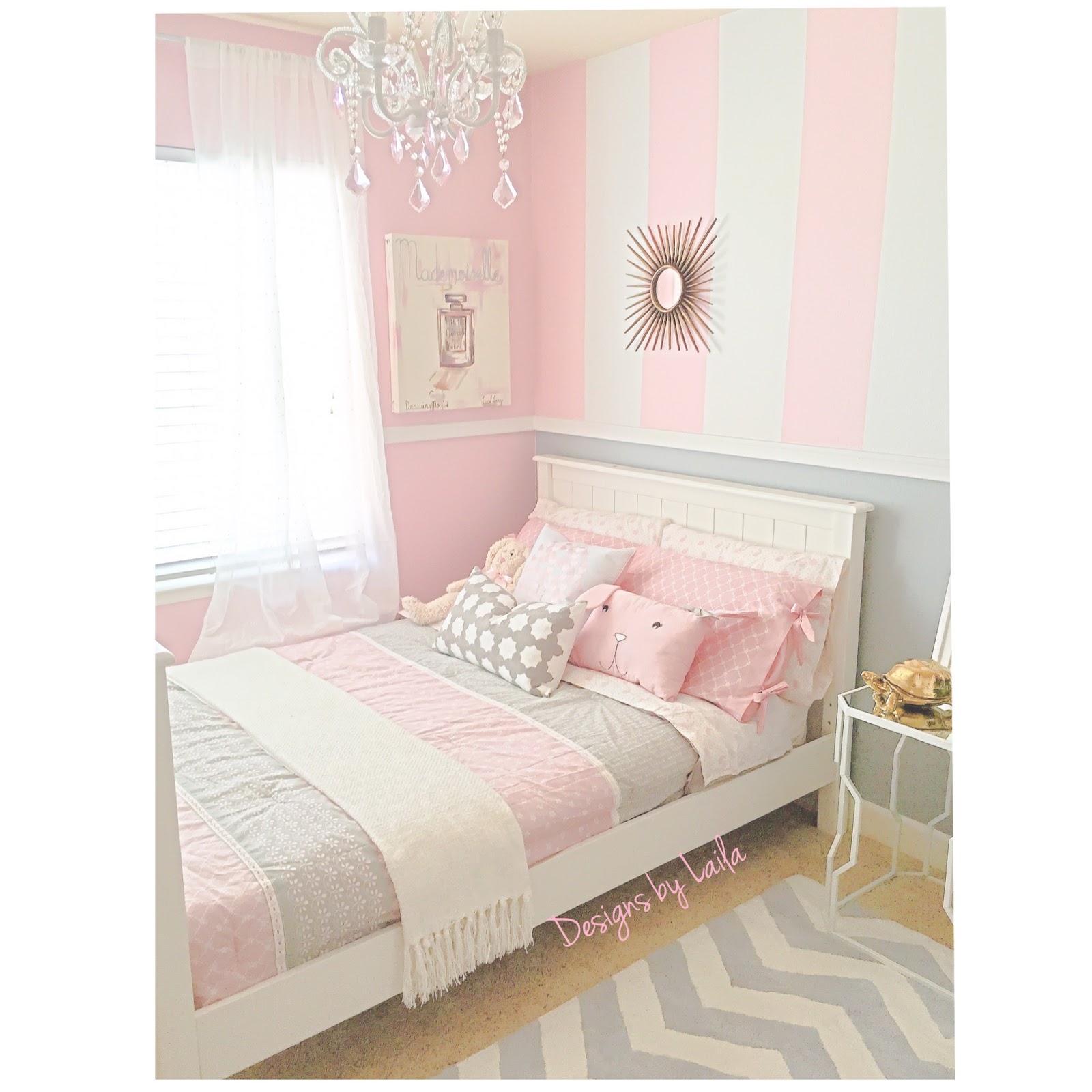 Yay the pics are finally up! We had tons of fun giving our daughter’s room a makeover. I’m very proud of my husband for doing such a great job painting & adding those stripes, it wasn’t easy! But we did it & we LOVE LOVE LOVE how everything turned out! Hope you do too..cheers friends!